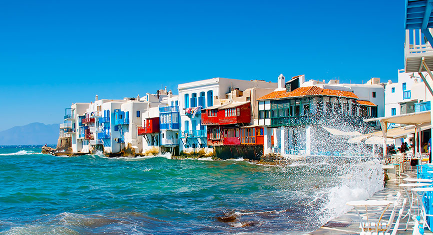 From your Mykonos Villa private veranda or garden, enjoy the unique experience of the colorful, spectacular Cycladic sunset. If you prefer to stay in a luxury hotel, we suggest you try the Myconian Imperial Resort & Thalasso Spa at Elia beach, Mykonos Blu Grecotel at Psarou beach, Mykonos Grand at Agios Ioannis or Bill & Coo Suites and Lounge at Megali Ammos beach.
