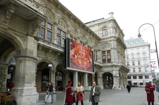The world-known Vienna State Opera is located in the very heart of the city where there is a promenade where people are strolling and mingling all the time. In front of the opera one can find a space where the seats for the audience is placed and in front of it a big panel where one can come and see the performance live for free. It is available to anyone who wants to come and although it can sometimes get a little bit cold, many people came and enjoyed the performances of some of the best artists in the world.